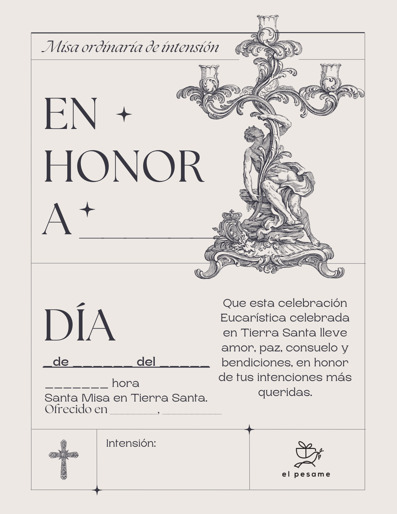 Misa en Tierra Santa: Una tarjeta que te brinda la oportunidad de tener una misa ofrecida en Tierra Santa, un lugar sagrado donde la espiritualidad se encuentra con la historia.